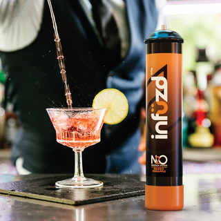 - Now, it's time to infuse your cocktail with the magic of nitrogen. Attach the Mango Pineapple cylinder to the infusion canister.